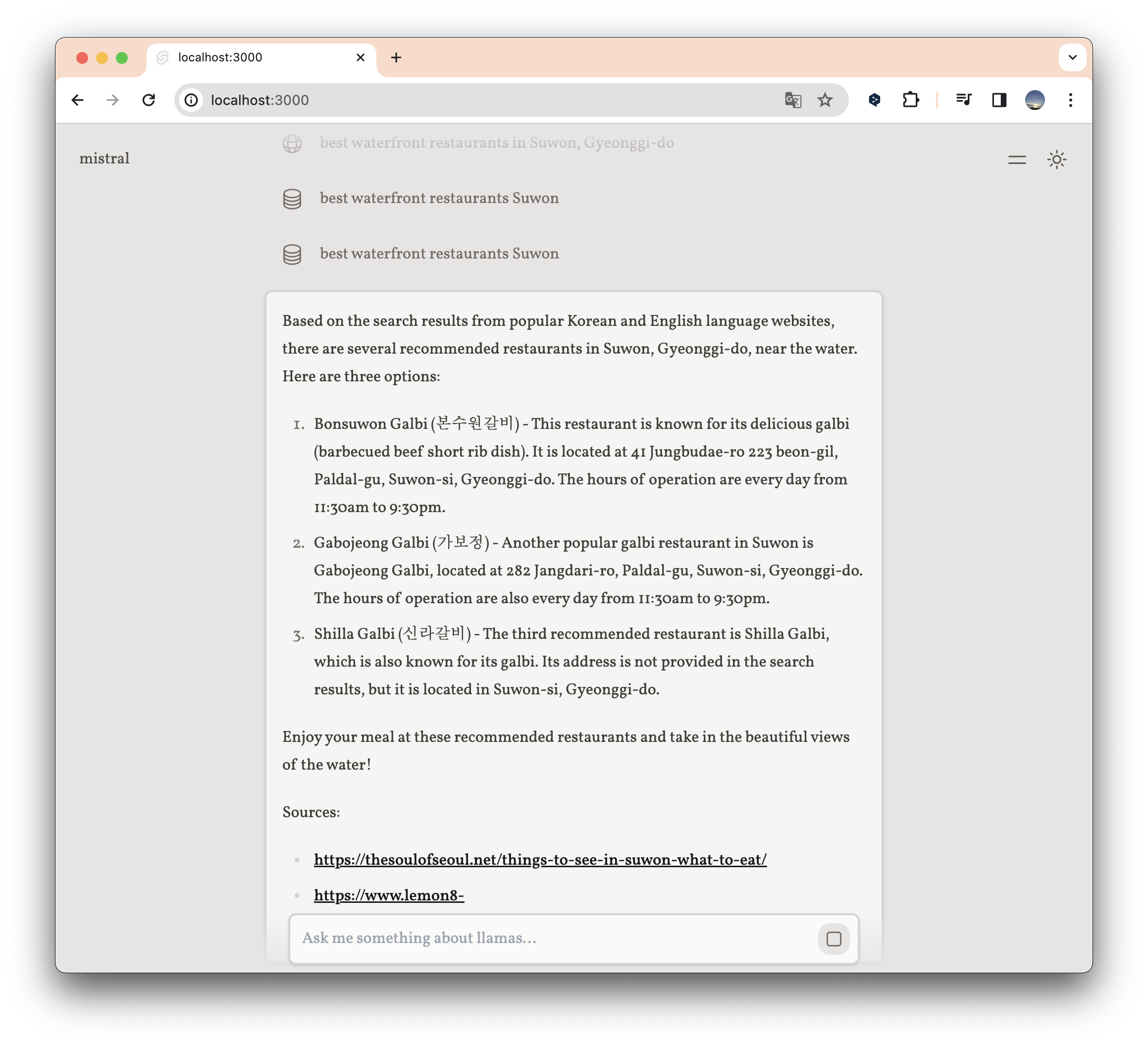 그런데 처음 접하는 경우에 이런 궁금증도 있을 수 있다. OpenAI(ChatGPT)는 ollama로 대신한다고 하면,,, 그럼 구글 검색(Google API) 없이 검색 결과를 어떻게 제공하는거지?!!