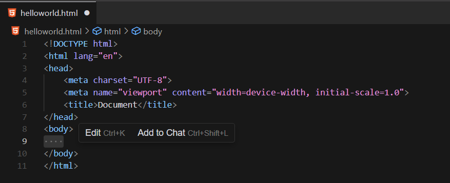 3. 바디 사이에 마우스로 일부 영역을 잡고 Add to Chat을 클릭한다