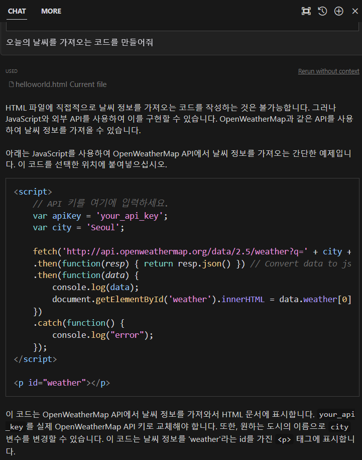 open api를 활용해서 오늘의 날씨를 알려주는 간단한 html 코드 만들어보기